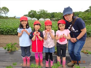 | すみれ組さんもイチゴを手にパチリ! | ひまわり組は初めての参加です | ||||