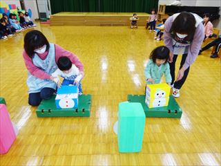 | 今日はみんなで雪だるまゲームをします ちゅうりっぷ組からスタート! |