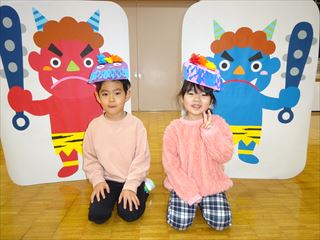 | 「鬼は外〜 福は内〜♪」 みんなで元気にうたいました |