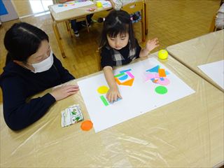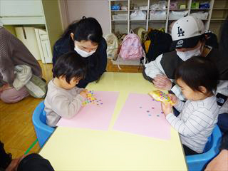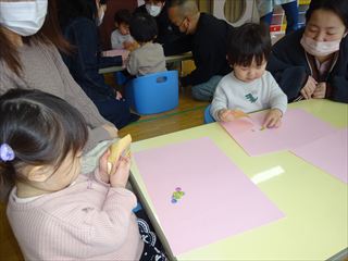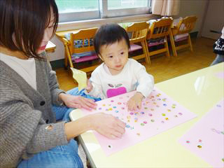 | ちゅうりっぷ組さんはシールはりをしました 今日はパパやママとペタペタ〜 ペッタン! |