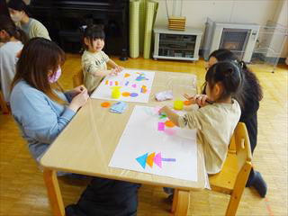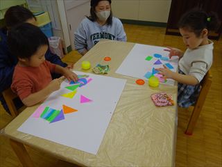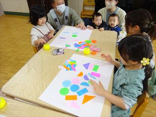 | いろいろな形をパパたちやママたちと作って楽しみました〜 |